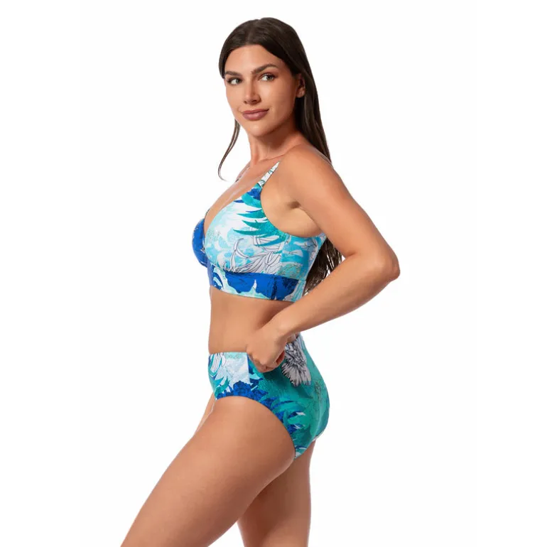 Introducing the GLOWING FIELDS CECILE MIDKINI TOP. Sophisticated and versatile, our top features a surplice front design and adjustable tank-style straps for comfort. The sewn-in cups provide support for multiple bust sizes. Elevate your beach look with this elegant and functional piece.