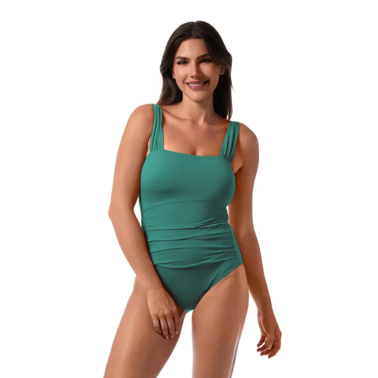 Our Hilda Glam One Piece is the suit you can’t live without. With a flattering square neckline and wide adjustable straps, tummy control and shirring, this suit is guaranteed to flatter your figure. The back features an adjustable tie to help give you customize the fit. – One Piece – Removable Cups – Shirring – Tummy Control – Adjustable Straps – UPF 50 – 84% POLYAMIDE,16% ELASTANE