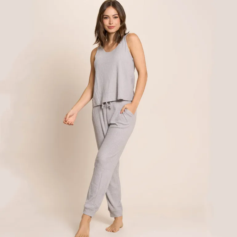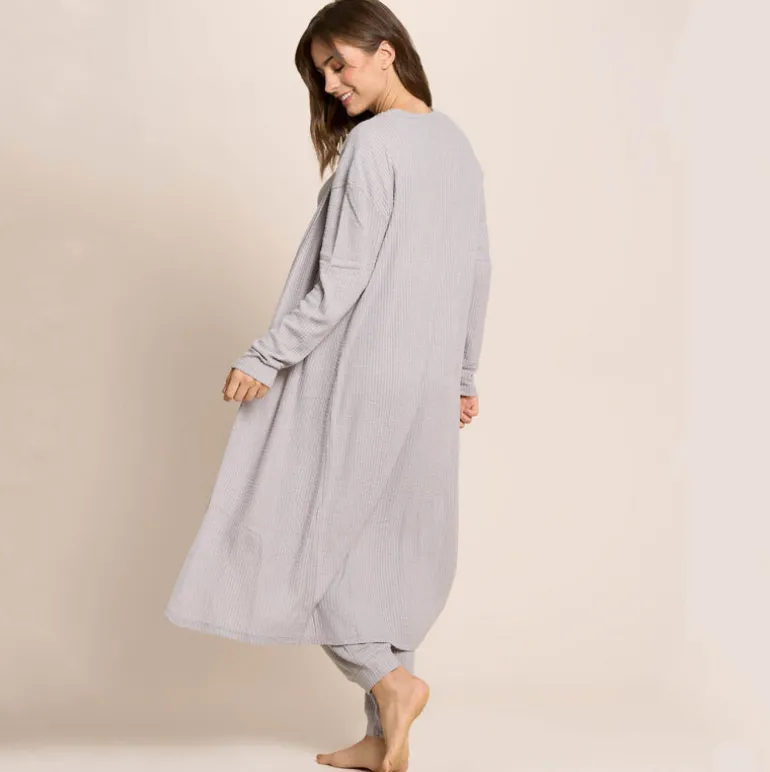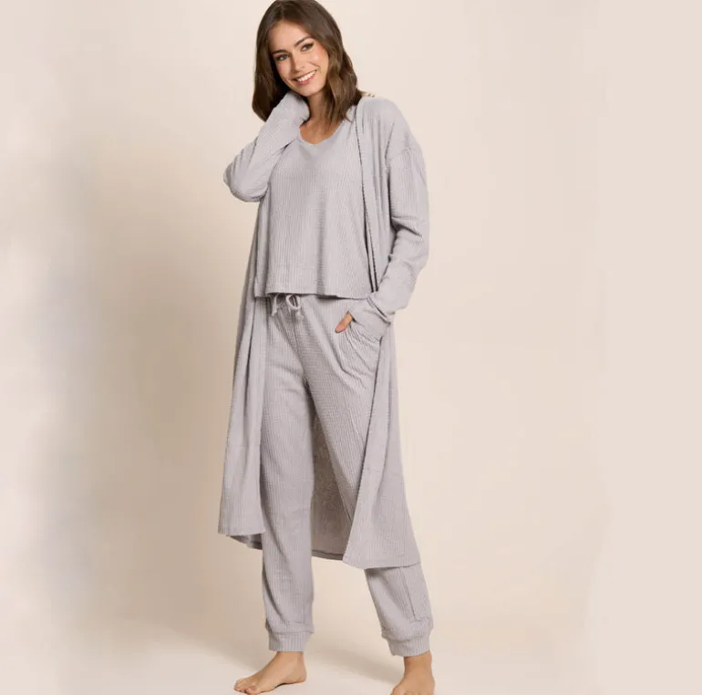This women’s lounge set includes one long-sleeveduster, one tank topand a pair of full-length bottoms for a cozy ensemble. This set is the perfect outfit if you’re settling in for some quality couch time., wear together as a set or mix with other lounge items for a variety of casual looks.