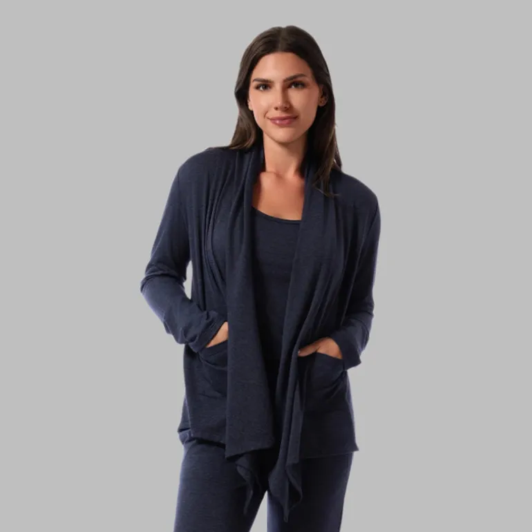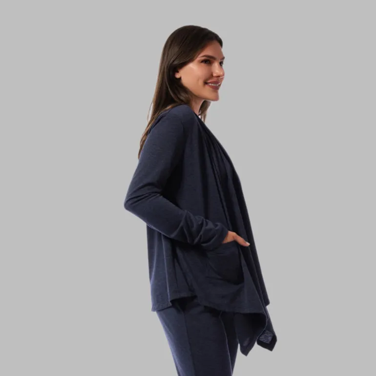 Wrap yourself in effortless style with the Audrey Handkerchief Cardigan. Lightweight and perfect for layering, this cardigan adds a touch of chic to any outfit. Made in the USA, it’s an essential piece for enhancing your loungewear collection. Embrace comfort and style year-round with this versatile and elegant cardigan.