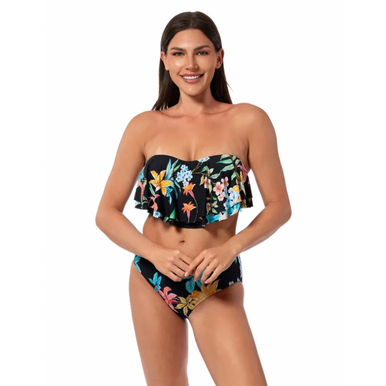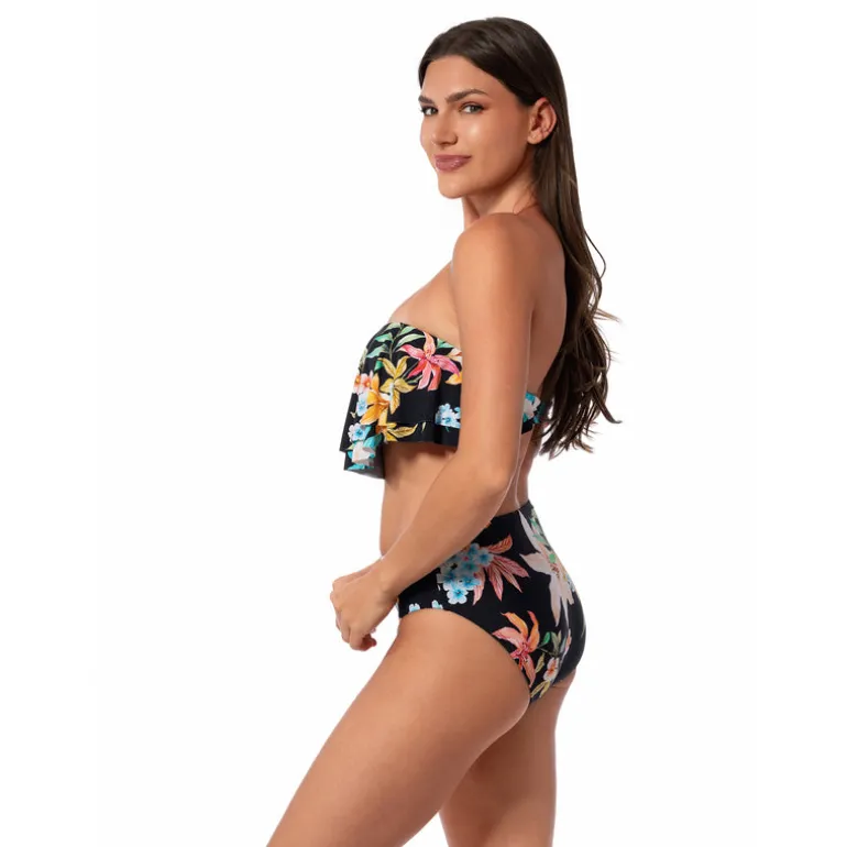 With sewn-in cups for added shape and a back clasp for secure closure, the Paloma Flounce Bandeau Top ensures a flattering look while providing excellent support.