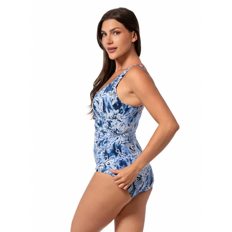 Designed with sewn-in cups, this one piece provides essential support and a flattering shape, while the tummy control panel works to create a slimming silhouette. The adjustable shoulder straps ensure a customized fit, and the full coverage bottom offers comfort and confidence.