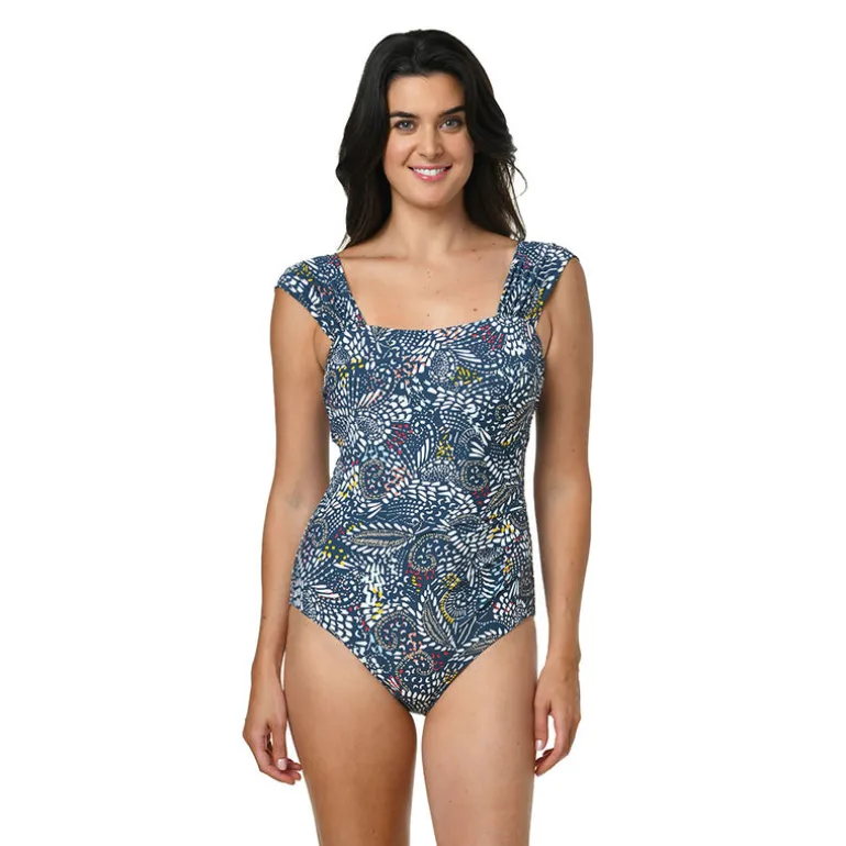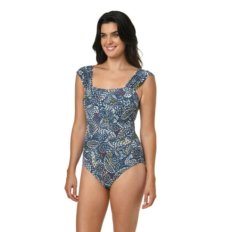 Our #1 Selling suit! Our Glamour Square Neck One Piece is the suit you can’t live without. With a flattering square neckline and wide straps that can be worn as a cap sleeve, tummy control and side shirring, this suit is guaranteed to flatter your figure.