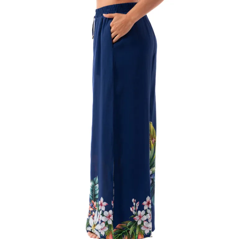 Josephine Pull-On Pant, designed for both comfort and versatility. With a wide flowy leg that features a stylish side leg slit, these pants are the perfect cover-up to throw on over your swim bottoms.
