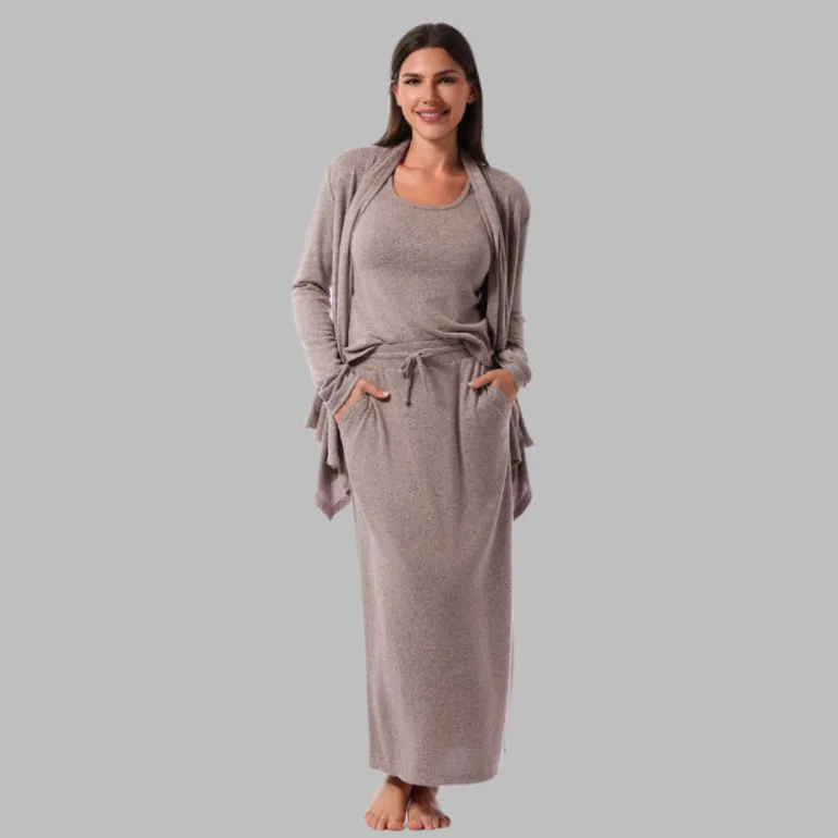 Elevate your loungewear collection with the Sydney Midi Skirt, a perfect complement to any outfit. Ideal for a quick coverup or as a stylish addition to your loungewear, this versatile skirt is made in the USA from high-quality fabric. Pair it with the matching top for a coordinated look or mix and match to create your own unique style. A great layering piece, the Sydney Midi Skirt is designed for year-round wear and effortless chic.